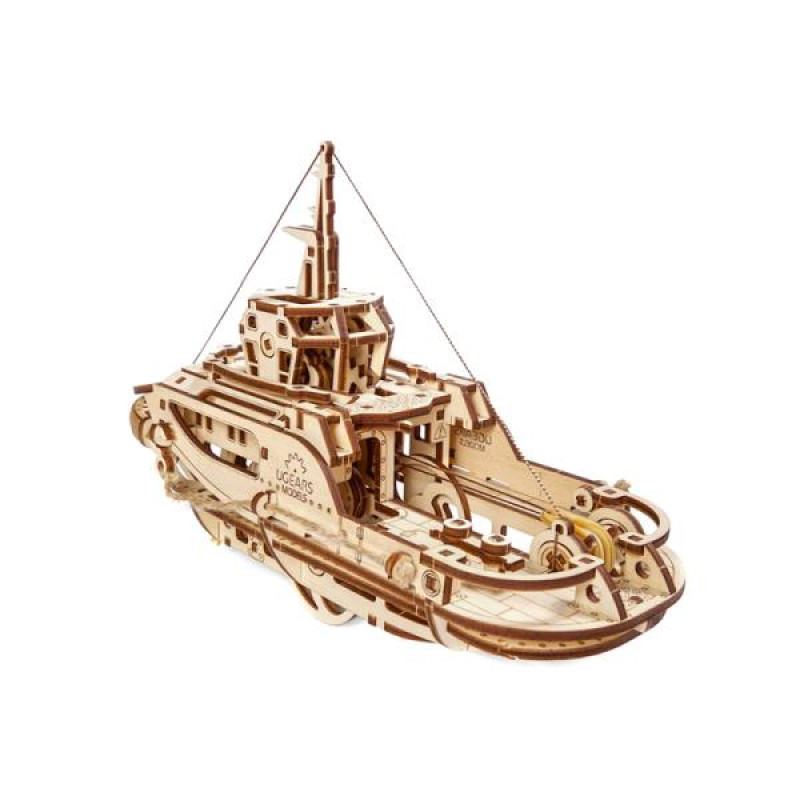 Хто не любить море! Сонце, пісок, легкий бриз і корабель, який погойдується на хвилях! Цю картинку зберігають у пам'яті тисячі людей. І вона ж надихнула команду Ugears на створення нової механічної моделі - Буксира.Невеликий корабель, який рухається в такт роботи свого двигуна, сміливо долаючи течію річки або морські хвилі. Буксир має гарну маневреність, підвищену міцність корпусу і міцність. Також, модель укомплектована спеціальними пристроями для буксирування.Основним завданням для наших інженерів при створенні буксира була імітація похитування на хвилях. Рішенням стало технічне ноy-хау - колісна пара з вісями, що рознесені симетрично. Під час руху Буксира ми також чуємо звук гумомотора, що нагадує роботу дизельного двигуна, створюючи навантаження на привід й асиметричну пару за принципом годинникового маятника.Внутрішній механізм добре видно, тому ви зможете спостерігати за роботою шестерень і зрозуміти принцип роботи даної моделі. На відміну від інших видів суден для буксира однією з ключових характеристик є не швидкість, а тяга, тобто сила, з якою він може діяти на судно, яке транспортує. Буксир може 2-ма штатними канатами з гаками зачепити невеликий вантаж (модель на колесах, «паперовий кораблик» та інше) і буксирувати його в майже без втрати швидкості руху. Після повного заводу модель рухається 1,5-3 м, залежно від поверхні.Ця модель має наступні технічні характеристики: 169 деталей, розташованих на 4 дошках, в комплекті з 12 додатковими деталями (гумки, та канати). Модель повністю укомплектована всім необхідним для складання.Для складання вам не знадобиться клей або спеціальні інструменти. Збирається модель за покроковою ілюстрованою інструкцією з поясненнями 11 мовами (українською, англійською, німецькою, французькою, польською, іспанською, російською, японською, італійською, китайською та корейською).Розмір моделі в готовому вигляді: 28.5*12*18.5 смКількість деталей : 169Розрахунковий час складання : 2.5 годиниРівень складності : Середній