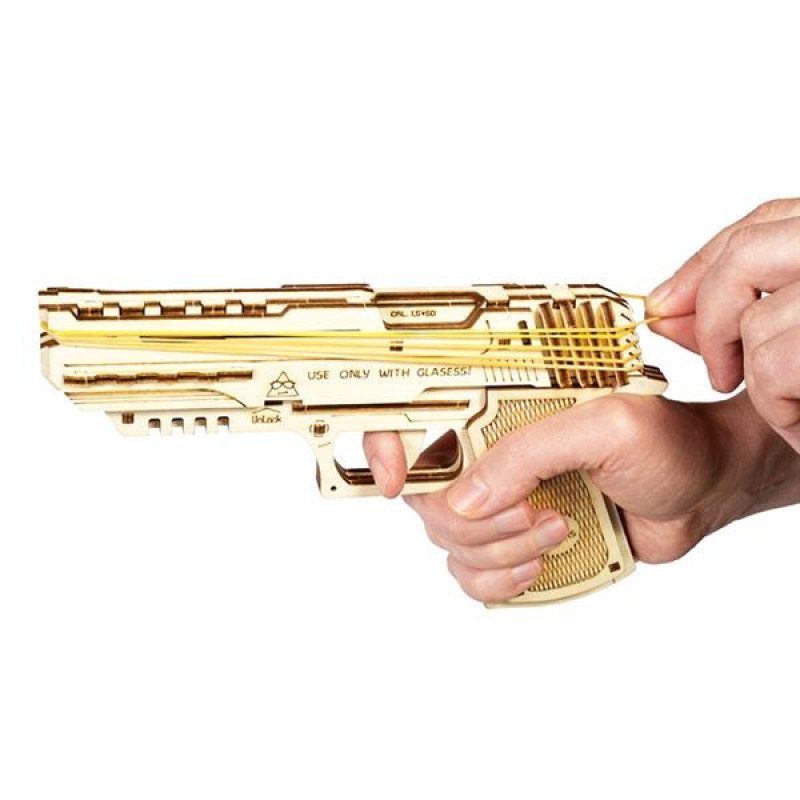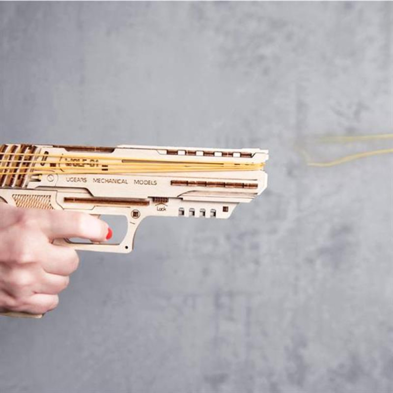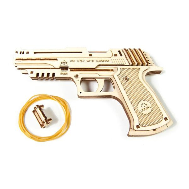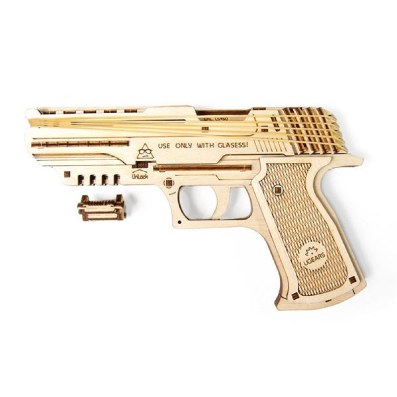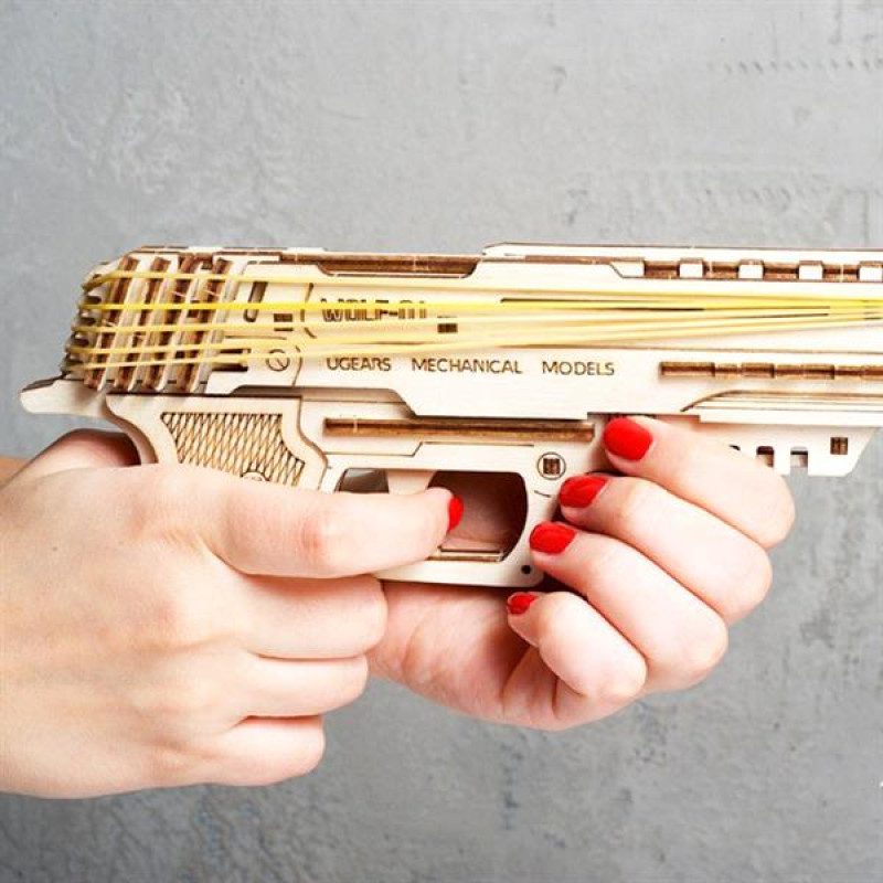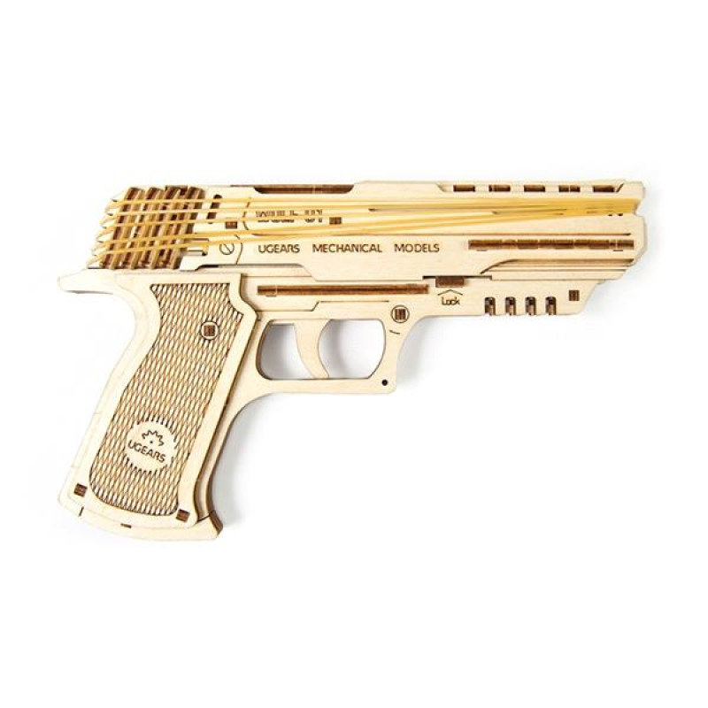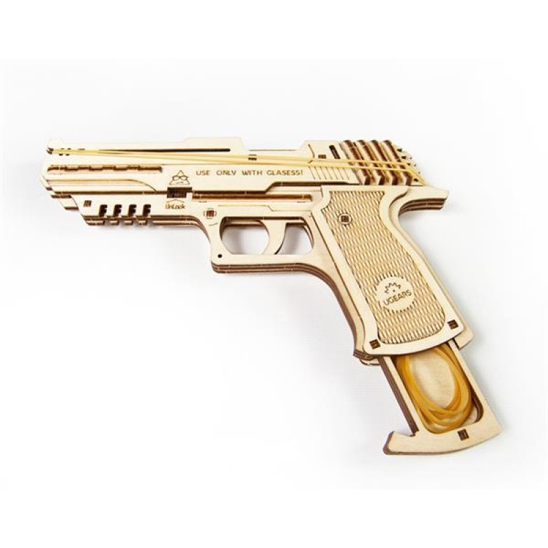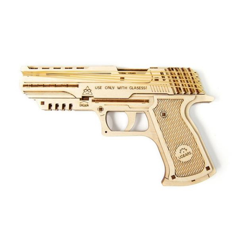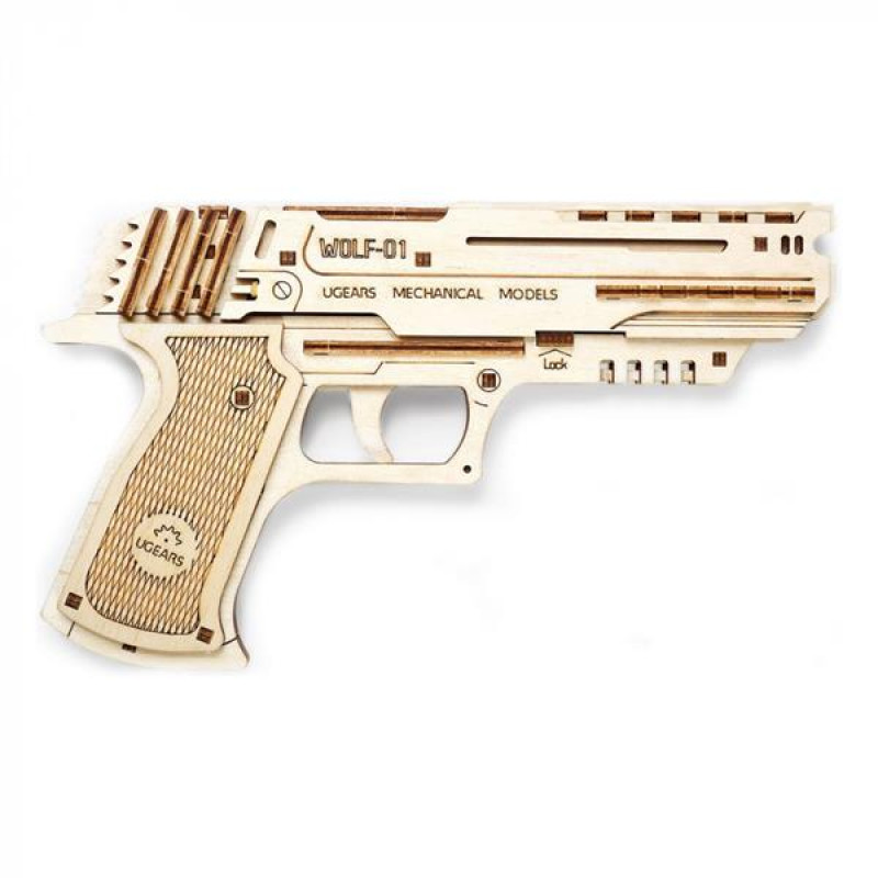 Дерев'яний механічний 3D конструктор Ugears Пістолет Вольф-01 (70047)