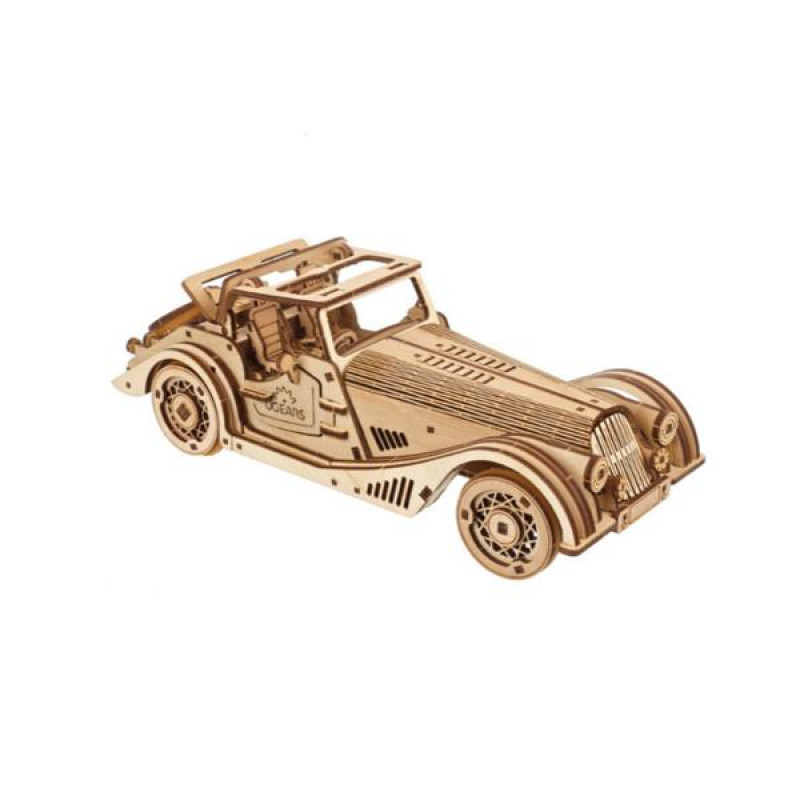 Дерев’яний механічний Спорткар Спритна миша має подвійну функцію двигуна. Заведіть пружинний двигун, зробивши шість обертів ключем, розташованим на ходовій частині автомобіля, або потягніть модель назад уздовж рівної поверхні, відпустіть і спостерігайте, як автомобіль мчить уперед. Ця дерев'яна модель автомобіля може повертати ліворуч або вправоруч, адже передні колеса повертаються та задають напрямок руху. Гумові шини забезпечують зчеплення з поверхнею, їх легко монтувати та замінювати. Спорткар Спритна миша має реалістичне масштабування, чудово деталізований інтер’єр, функціональне запасне колесо, встановлене на багажнику, яким можна замінити будь-яке з передніх коліс, бічні двері, що відчиняються, і складаний дах із люком.Дерев’яний механічний конструктор Спорткар Спритна миша має 226 деталей і легкий рівень складності. Усе необхідне для складання є в коробці. Просто вийміть деталі, попередньо вирізані лазером у фанерних дошках, і з’єднайте їх між собою, дотримуючись наших ілюстрованих покрокових інструкцій 11 мовами. Насолоджуйтеся 4 годинами складання, а потім годинами ігор з автомобілем, який ви створили власноруч. Розмір моделі: 21*7,5*13,5 cmКількість деталей : 226Розрахунковий час складання : 4 годиниРівень складності : Легкий
