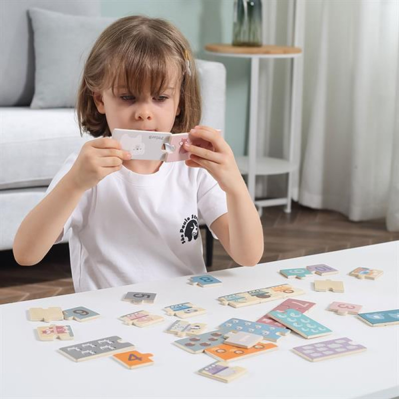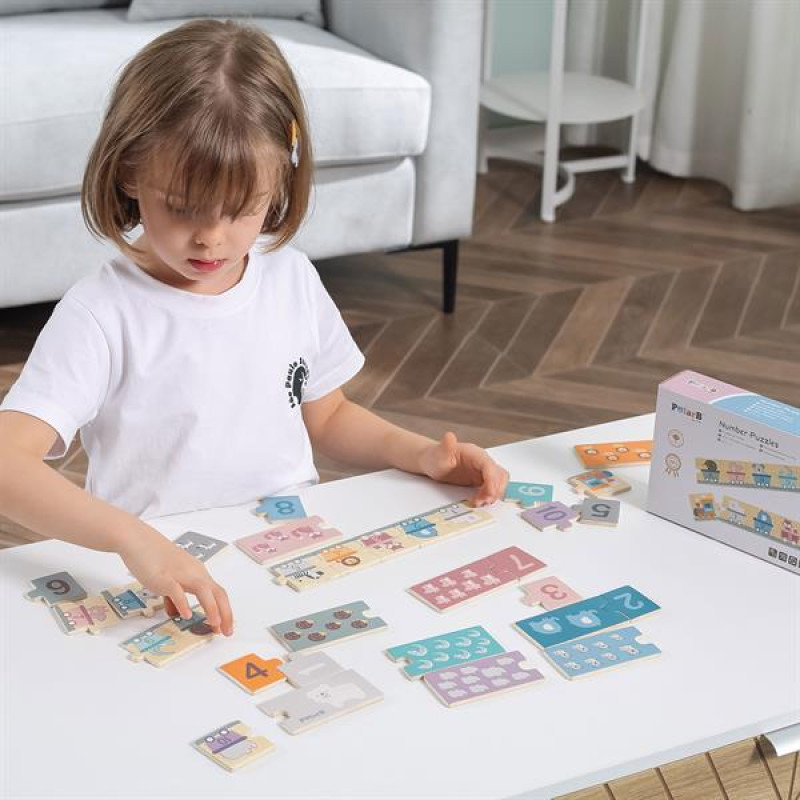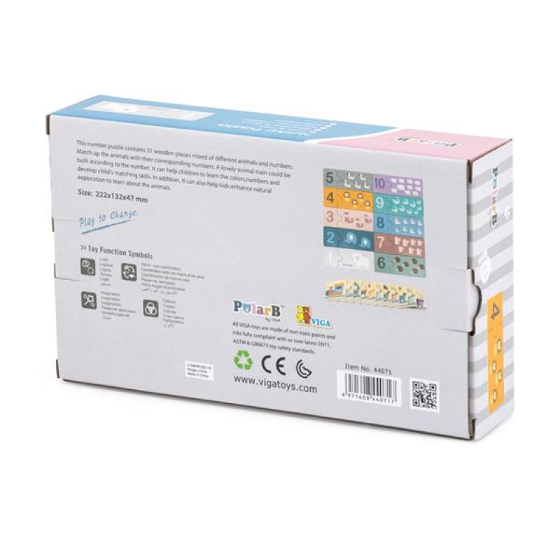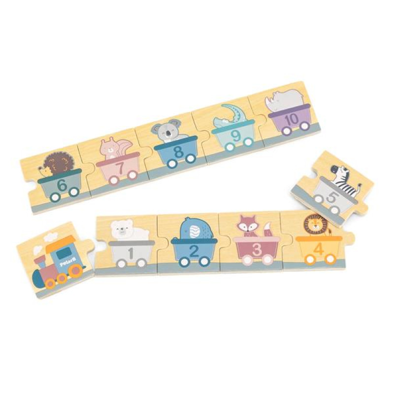 Малюк пізнавально проведе час із дерев'яним пазлом PolarB Числа та звірята. Пазл складається з 20 кольорових елементів: 10 з цифрами та 10 з різною кількістю звірят. На звороті намальовані вагони зі звірятами та числа. Завдання діток #8211; правильно з'єднати деталі пазла, щоб цифри та кількість звірят відповідали. Або скласти поїзд із вагончиків із числами за спаданням або зростанням. Розвивальний пазл зацікавить хлопчиків і дівчаток від 18 місяців до 4 років.Ігри з пазлом PolarB допоможуть дитині навчитися розпізнавати форми, кольори, запам'ятати назви тварин. Малюк познайомиться з милими зебрами, левами, слониками, лисицями, носорогами, їжачками, білочками, крокодилами та білим ведмедиком.Складання такого пазла-сортера дає уявлення про цифри, поняття кількість, розвиває математичні здібності, уміння рахувати, уважність, логічне мислення, координацію руки-очі. Дерев'яний пазл підходить для занять за методикою Монтессорі.Дерев'яні іграшки PolarB виконані в пастельних тонах. Малюнки звірять милі та симпатичні. Для виготовлення використані якісні матеріали: деревина та гіпоалергенні фарби.Дерев'яний пазл PolarB Числа та звірята відповідає міжнародним сертифікатам якості та безпеки: європейському EN71 та американському ASTM.У комплекті пазл із 20 деталей.