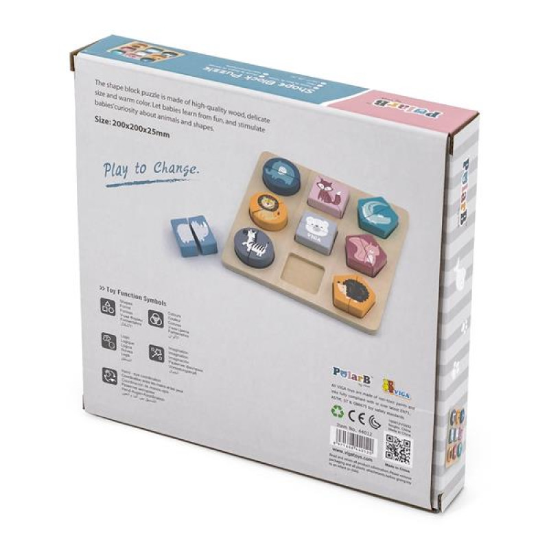 Дитина цікаво проведе час із дерев'яним пазлом PolarB Форми і звірята. Пазл складається з квадратної підставки 20 см із виїмками для укладання 18 блоків #8211; частин фігур. Розвивальна іграшка зацікавить дітей переддошкільного віку від 18 місяців.Ігри з пазлом від допоможуть дитині в пізнанні світу, вона навчиться розпізнавати форми, кольори, запам'ятає назви тварин. Познайомиться з милими зеброю, левом, слоником, лисицею, білим ведмедиком, носорогом, їжачком, білочкою і крокодилом. Збирання такого пазла-сортера розвиває уважність, посидючість, логічне мислення, дрібну моторику, координацію руки-очі, уяву. Дерев'яна іграшка підходить для занять за методикою Монтессорі.Малюк буде складати картинку з двох блоків за кольором і поміщати отриману фігурку у відповідний отвір на підставці. Усього йому необхідно зібрати і розсортувати 9 міні-пазлів.Іграшки PolarB виконані в пастельних відтінках кольорів. Малюнки звірят милі та симпатичні. Для виготовлення використані якісні матеріали: деревина і гіпоалергенні фарби.Розвивальний дерев'яний пазл відповідає міжнародним сертифікатам якості та безпеки: європейському EN71 і американському ASTM.У комплекті підставка з фігурними виїмками і 18 дерев'яних блоків.Пазл не має картинок-підказок на основі.