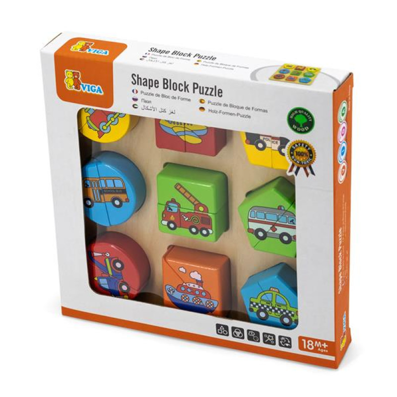 Чи можуть геометричні фігури одночасно бути і вкладишами, і пазлами, і яскравими машинками? Так, саме так виглядає розвиваюча іграшка від Viga Toys Форми та транспорт для дітей від 18 місяців.Вона являє собою барвистий багатодетальний дерев’яний пазл, виконаний у вигляді плоскої квадратної підставки з 9 вирізами різних форм. Кожній виїмці відповідає свій геометричний блок із двох половинок. На ньому намальований транспортний засіб, котрий також є міні-пазлом із двох складових частин.Задача дитини #8211; зібрати з половинок малюнок-машинку та дерев’яну фігуру-пазл, після чого вставити її в підходящий отвір на підставці. Це зробити не так легко, адже спочатку треба навчитися співвідносити частини та ціле, порівнювати форму предмета з виїмкою під нього.Граючись із таким навчальним набором, дитина запам’ятовує кольори та форми, знайомиться з різними видами транспорту. Вона розширює свій кругозір, розвиває пам’ять, пізнає світ не лише візуально, а й тактильно.Пазл від Viga Toys Форми та транспорт призначений для малюків від 18 місяців. Він міцний і зручний у використанні. Яскраві тематичні картинки чіпляють око, а великі дерев’яні елементи ідеально підходять для маленьких ручок.Набір виготовлений із цільного дерева. Рекомендований для навчання за методикою Монтессорі.