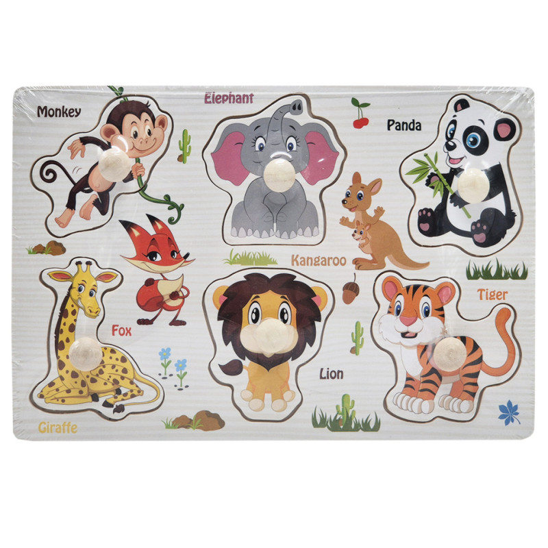 Дерев'яний пазл-вкладиш Африканські тварини 53972-2 ручка-тримач у плівці
