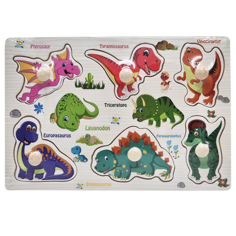 Дерев'яний пазл-вкладиш Динозаври 53972-10 ручка-тримач, у плівці