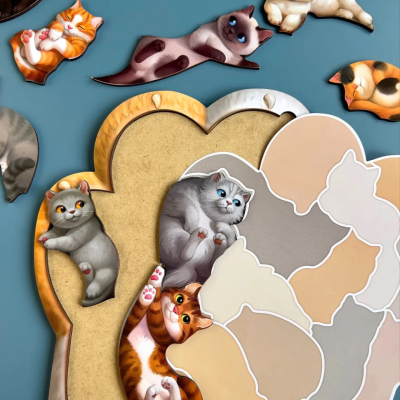 Вашi дiти обожнюють котиків? Тодi ця гра саме для Вас: 14 милих котикiв чекають зустрiчи з Вашим малюком. У наборi вкладиш-пiдказка, щоб дитина могла по тiнi шукати вiдповiдного котика. Коли дитина навчиться, то ускладнити завдання можна, знявши пiдказку.