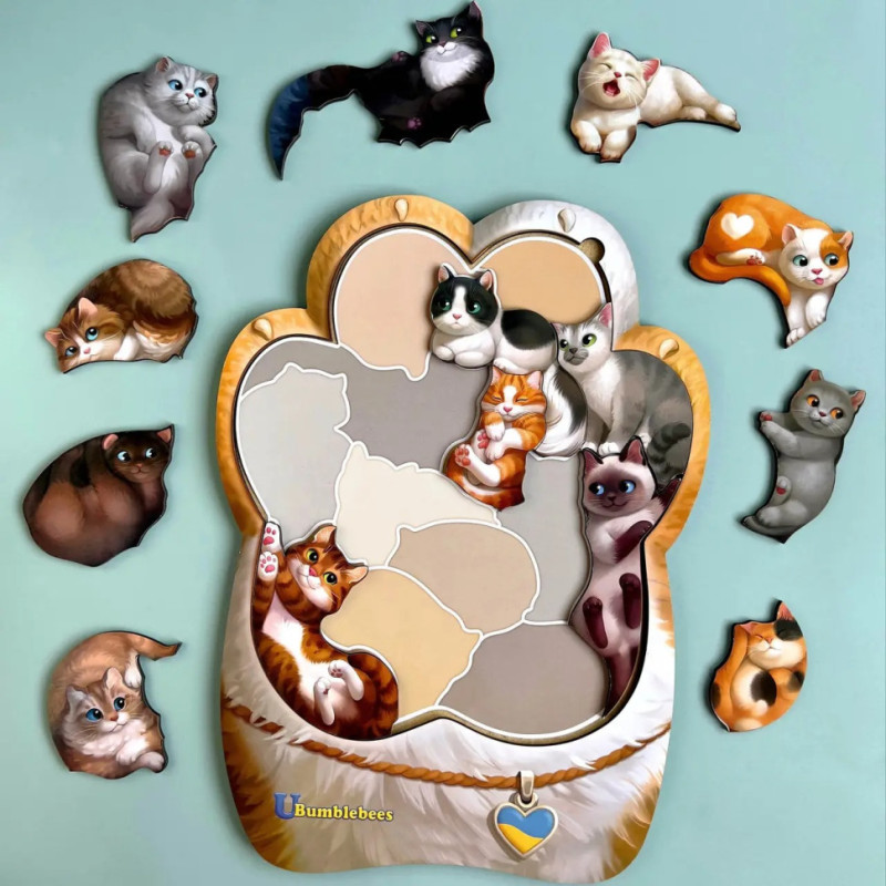 Дерев'яний пазл-вкладиш "Котики-муркотики" Ubumblebees (ПСФ133) PSF133
