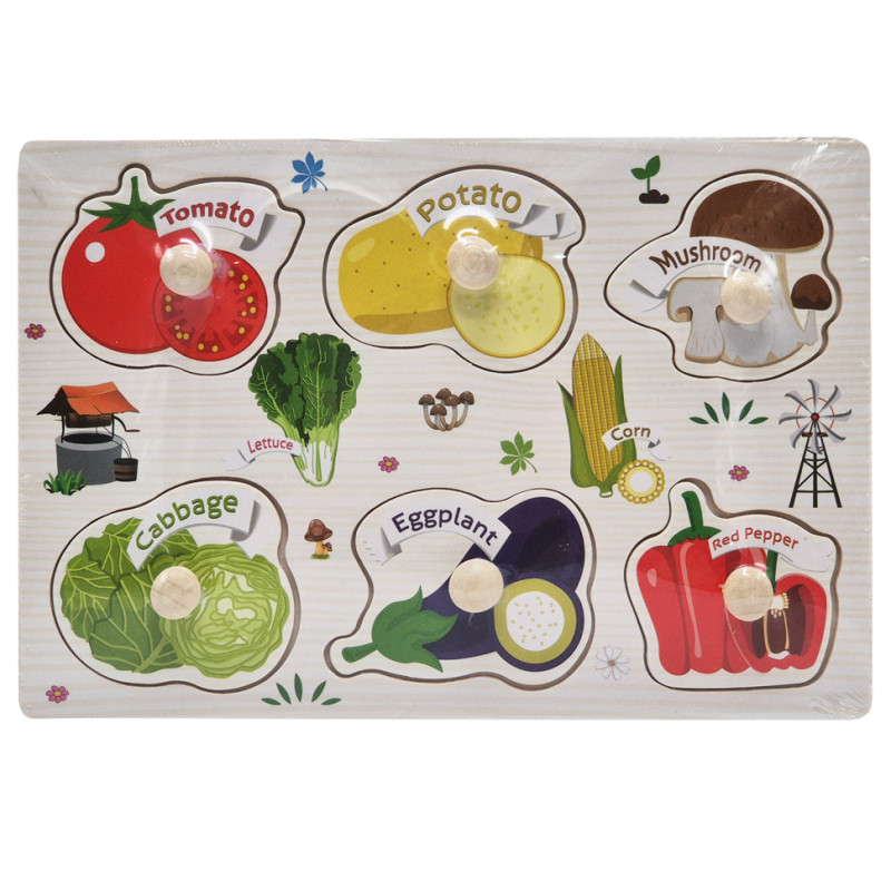 Деревяний пазл-вкладиш Овочі 53972-8 ручка-тримач у плівці