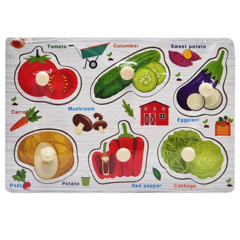 Дерев'яний пазл-вкладиш Овочі 73239-4 назви англійською мовою