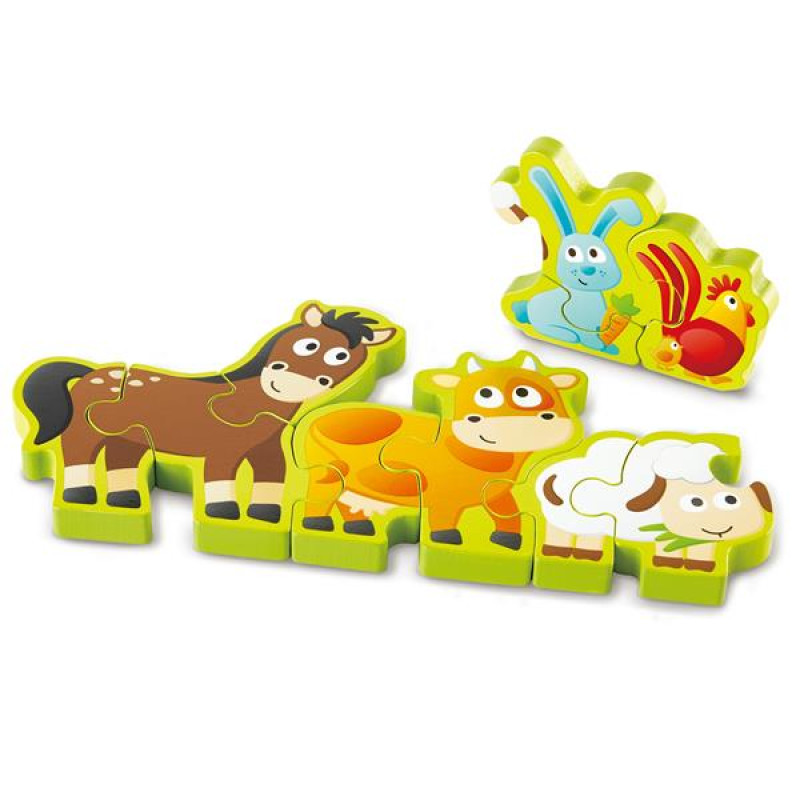 Дерев'яний двосторонній пазл Звірята на фермі від Hape цікава настільна гра для вивчення рахунку від 1 до 10. З'єднайте всіх звірів разом і поверніть пазл, щоб побачити, чи в порядку цифри.Елементи головоломки можуть стояти на столі вертикально. Розмір гри: 34 х 13 см.Ця захоплююча гра підійде для хлопчиків і дівчаток у віці 3 років і старше. Дерев'яний пазл з цифрами Hape Звірята на фермі 10 ел. (E1628) відповідає міжнародним стандартам якості EN 71 і ASTM F963.