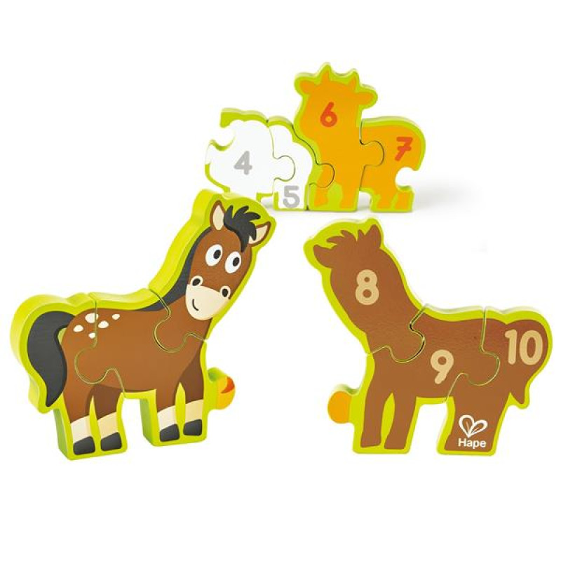 Дерев'яний пазл з цифрами Hape Звірята на фермі 10 ел. (E1628)