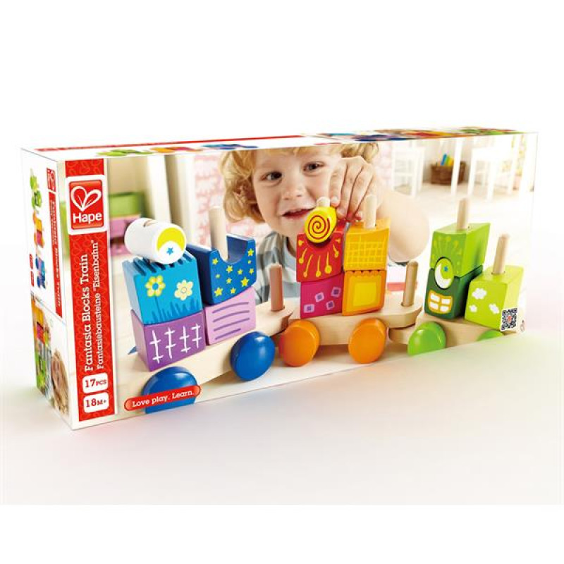 Дерев'яний поїзд із кубиків Hape - це ігровий набір із 17 деталей. Він особливо сподобається молодим любителям машинок і кубиків. Паровоз з вагончиками можна розбирати і збирати в різних варіантах, нанизуючи кольорові кубики на штирі, і возити по всьому будинку.Іграшка сприяє розвитку зорово-моторної координації, логічного та просторового мислення. Малюки також навчаться розрізняти форми та кольори. Щоб скласти вагони, можна підібрати фігурки під колір коліс основи, а можна підключити фантазію та побудувати різнокольорові.• Блоки виконані в яскравих кольорах і прикрашені візерунками.• Потяг складається з паровоза і двох вагончиків, що з'єднуються між собою.• Пересувається поїзд із кубиків Hape на колесах.• Краї деталей ретельно оброблені для безпечної гри.• Паровозик сподобається хлопчикам і дівчаткам від 18 місяців.• Розмір поїзда у складеному вигляді: 41 х 8 х 12 см.