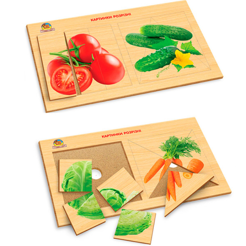 Дидактична гра рамки-вкладиші розрізні Овочі - 4-и картинки розрізні КР-076