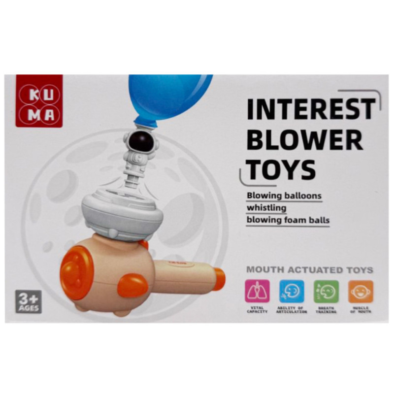 Підкорюй космос разом із нашим веселим астронавтом! Просто подуй у трубочку — повітряна кулька надувається, а пластиковий космонавт готується до старту. Натисни кнопку — і він злітає в небо, мов справжня ракета, на силі повітря, що виривається з кульки!