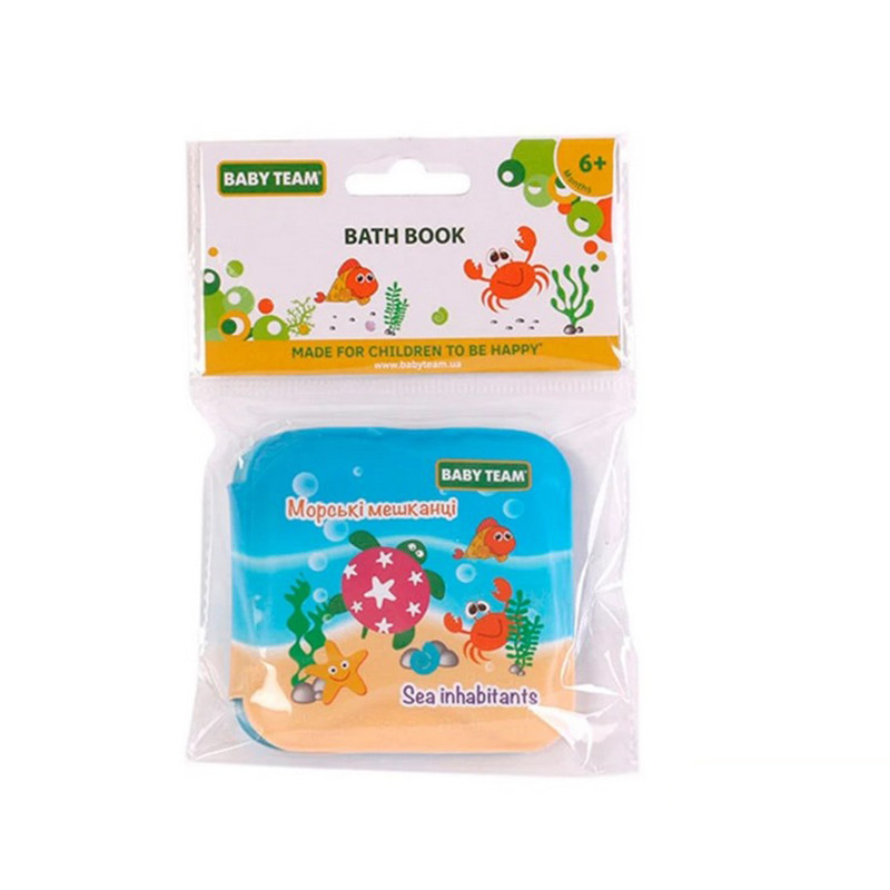 BABY TEAM Яскрава книжечка познайомить Вашого малюка з мешканцями підводного світу. Виконана з водонепроникного матеріалу, спеціально для гри у ванні. Сторінки книжечки м'які, мають заокруглені краї, одна із сторінок з пискавкою. Розвиває концентрацію уваги, дрібну моторику, тактильні відчуття, координацію рухів та колірне сприйняття. Іграшки Baby team виготовлені з високоякісних і безпечних матеріалів, а також не містять шкідливих речовин і Бісфенол А.