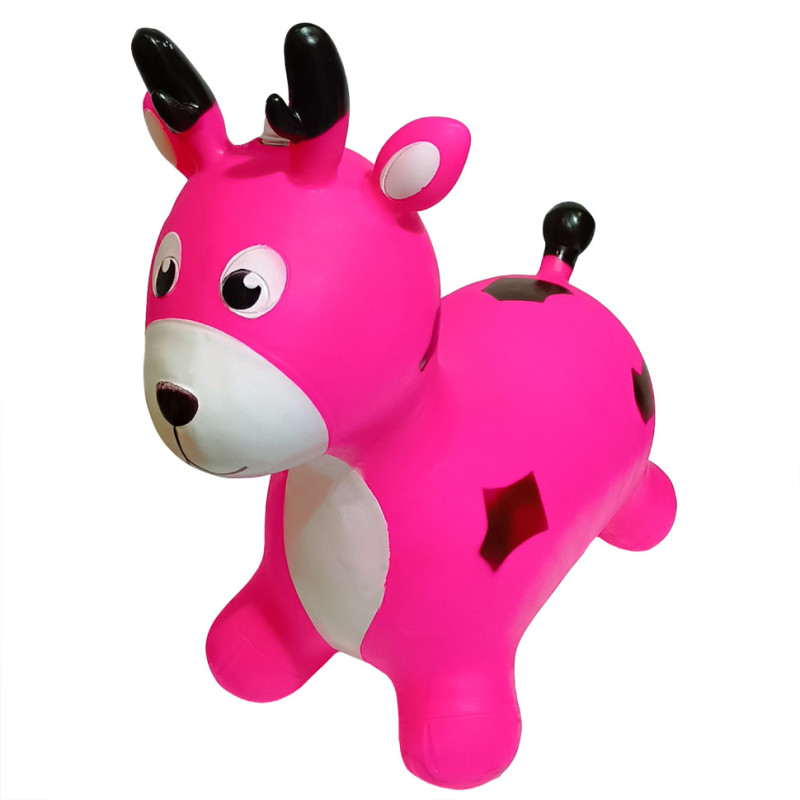 Надувна іграшка-тренажер для стрибків і розвитку координації у дітей. Стрибаючи на іграшці-стрибуні, малюк не тільки розвине всі групи м'язів і координацію рухів, а й отримає масу задоволення: адже ця кумедна іграшка-стрибун виготовлена у вигляді тварини, що сприятиме розвитку в дитини фантазії та дасть змогу грати в сюжетно-рольові ігри. За допомогою зручних довгих вушок стрибуна малюк зможе міцно утримуватися на іграшці під час стрибків. Така надувна гумова іграшка-стрибун обов'язково сподобається вашій дитині. Він допоможе сформувати правильну поставу і зміцнити спину (що особливо важливо під час корекції постави у дітей), розвинути вестибулярний апарат і поліпшити координацію рухів.