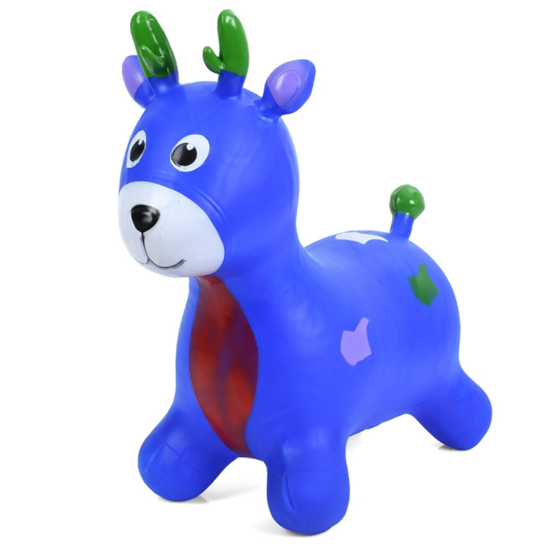 Надувна іграшка-тренажер для стрибків і розвитку координації у дітей. Стрибаючи на іграшці-стрибуні, малюк не тільки розвине всі групи м'язів і координацію рухів, а й отримає масу задоволення: адже ця кумедна іграшка-стрибун виготовлена у вигляді тварини, що сприятиме розвитку в дитини фантазії та дасть змогу грати в сюжетно-рольові ігри. За допомогою зручних довгих вушок стрибуна малюк зможе міцно утримуватися на іграшці під час стрибків. Така надувна гумова іграшка-стрибун обов'язково сподобається вашій дитині. Він допоможе сформувати правильну поставу і зміцнити спину (що особливо важливо під час корекції постави у дітей), розвинути вестибулярний апарат і поліпшити координацію рухів.