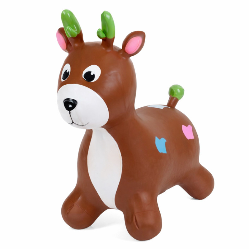 Надувна іграшка-тренажер для стрибків і розвитку координації у дітей. Стрибаючи на іграшці-стрибуні, малюк не тільки розвине всі групи м'язів і координацію рухів, а й отримає масу задоволення: адже ця кумедна іграшка-стрибун виготовлена у вигляді тварини, що сприятиме розвитку в дитини фантазії та дасть змогу грати в сюжетно-рольові ігри. За допомогою зручних довгих вушок стрибуна малюк зможе міцно утримуватися на іграшці під час стрибків. Така надувна гумова іграшка-стрибун обов'язково сподобається вашій дитині. Він допоможе сформувати правильну поставу і зміцнити спину (що особливо важливо під час корекції постави у дітей), розвинути вестибулярний апарат і поліпшити координацію рухів.