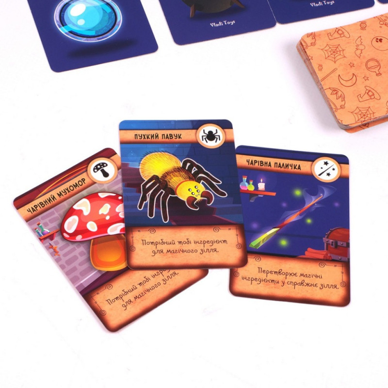 Окрім варіння зілля, ти зможеш скидати дві однакові картки або наосліп обмінюватись картками з іншими гравцями. Коли останнє зілля буде зварене, найвправніший алхімік, який зібрав найбільшу колекцію магічного зілля, здобуде перемогу.