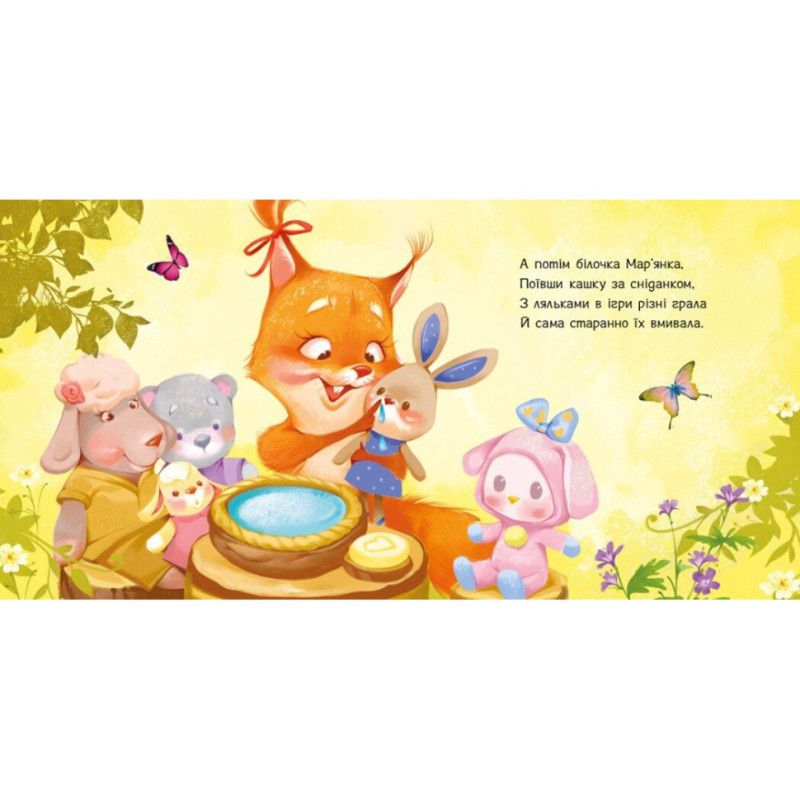 Серія «Потрібні книжки» ― це корисні книжки для найменшеньких. Грайливі віршики про життя звірят допоможуть малюку легко виконувати чимало складних дитячих справ і завдань. А в цій книзі мале білченя навчить дитину охоче вмиватися вранці!
