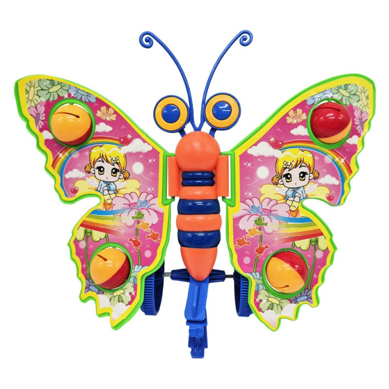 Каталка в ручку у вигляді метелика. Виконана з високоякісного, міцного пластику. При русі рухає крильцями, на яких дзвенять дзвіночки. Довжина палички (зі зручною ручкою) - близько 44 см.