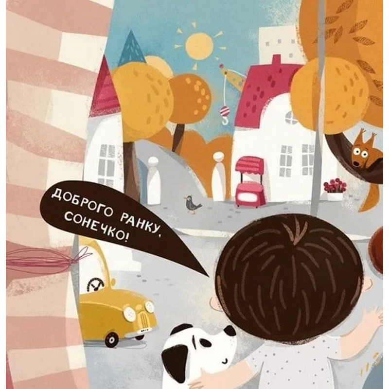 Бодьо та Мися радiсно розпочинають день. Дiти вiтаються iз сонцем, iз бiлкою, яку помiтили за вiкном, i навiть з автiвками на вулицi. Потiм вони чистять зубки, одягаються та снiдають. Не забувають також погодувати песика й кицю. I в усьому їм допомагають маленькi читачi та читачки.