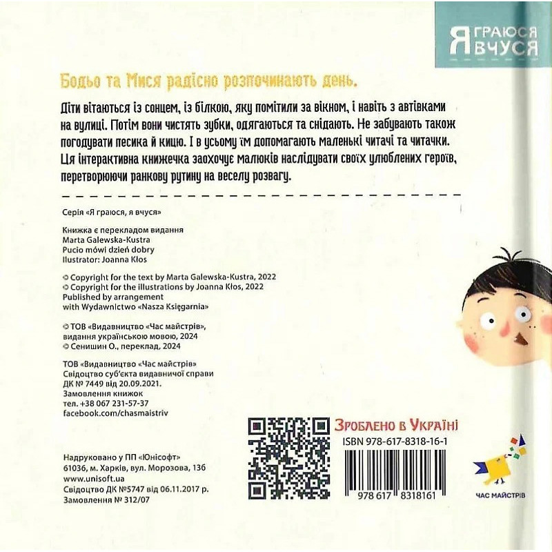 Дитяча книга "Я граюся, я вчуся Бодьо каже: Доброго ранку!" 318161