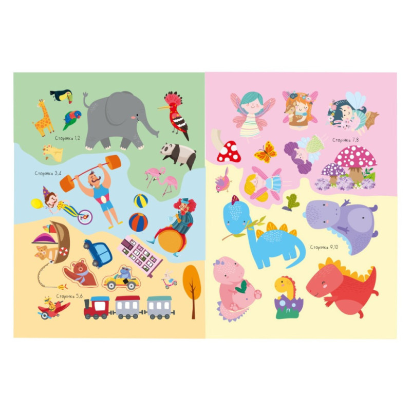 Ці яскраві книжечки містять яскраві наліпки різних форм та розмірів, які діти можуть знімати та творчо приклеювати на сторінки.