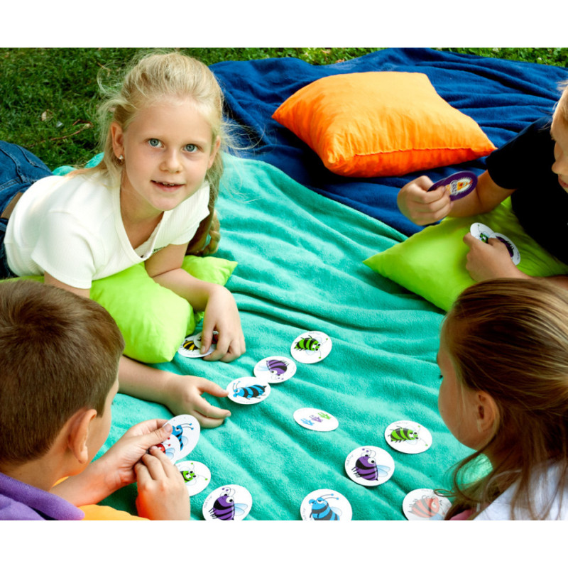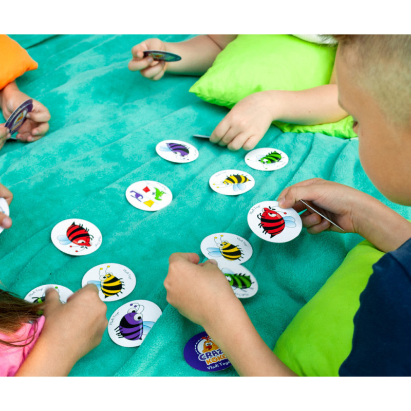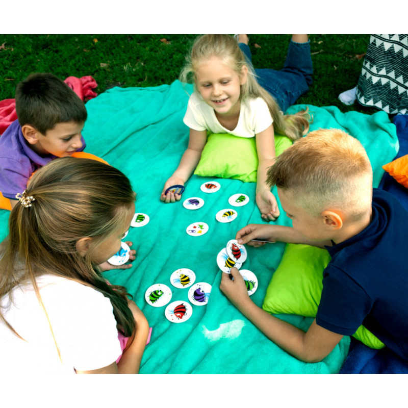 Дивись на фішку з малюнком і збирай бджілок відповідно до послідовності кольорів на малюнку. Впорався першим? Хапай фішку собі і перемагай!