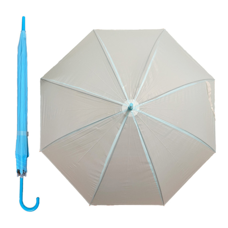 Парасолька - тростина, система відкривання-напівавтомат, довжина рукояті 76 см. Кількість спиць 8 шт, довжина однієї спиці 54 см. Діаметр у розкритому вигляді 95 см. Ручка металева, гак. Щільний, напівпрозорий полімерний