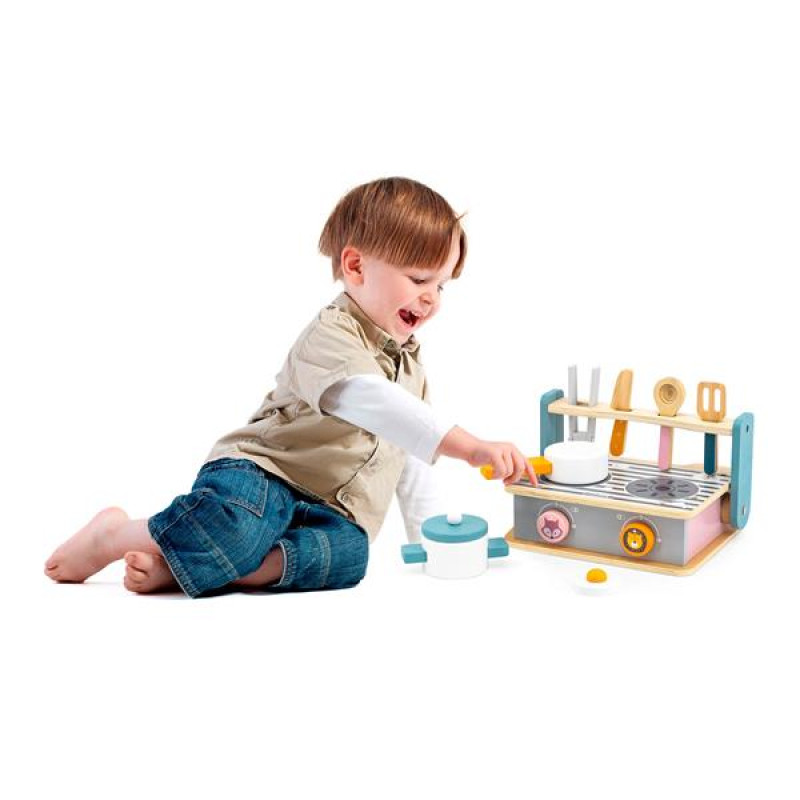 Тато і мама влаштовують барбекю з друзями, а як же бути маленькому кулінарові? Щоб малюк спробував себе в ролі шеф-кухаря, подаруйте йому складну дитячу плиту PolarB з посудом і грилем. Розвиваючу іграшку можна складати і розкладати, брати на пікнік. Набір сподобається дітям дошкільного віку від 3 років.Приготування уявної їжі активізує дитячу уяву, надихне на нові сценарії ігор, спілкування. Набір із безліччю кухонного начиння допоможе розвинути координацію рук і очей, дрібну моторику.Дітям важливо відчувати себе учасниками життя дорослих. Можливість готувати на дерев'яній іграшці у вигляді гриля дає малюкові впевненість у здібностях і прагнення до самостійності. Юний кухар запам'ятаює назви і функції предметів із набору кулінара.Розвивальна дерев'яна іграшка PolarB виконана в пастельних відтінках. М'які кольори і стильні візерунки на іграшковій кухні чудово впишуться в інтер'єр дитячої кімнати.Усі матеріали для виготовлення іграшок PolarB #8211; безпечні та якісні. Продукція відповідає міжнародним сертифікатам: європейському EN71 і американському ASTM. Батарейки не потрібні. Набір отримав нагороду Tillywig 2020 Top Fun як першокласний продукт для сімейного дозвілля та інтерактивної гри.У комплектіДвостороння плита з грилем #8211; 1 шт.Каструля з кришкою #8211; 1 шт.Сковорідка #8211; 1 шт.Лопатка #8211; 1 шт.Ложка #8211; 1 шт.Ніж #8211; 1 шт.Щипці #8211; 1 шт.Шампури #8211; 2 шт.Фігурні блоки для шашлику (м'ясо, овочі, морепродукти) #8211; 10 шт.