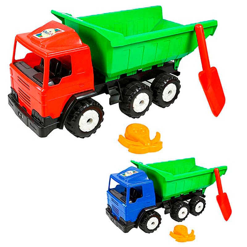 Головна деталь — місткий відкидний кузов, який можна зафіксувати у піднятому положенні для зручного "вивантаження" піску чи іграшок. Самоскид можна додатково укомплектувати совочком (арт. 719) та пасочками (арт. 702) для гри в пісочниці.