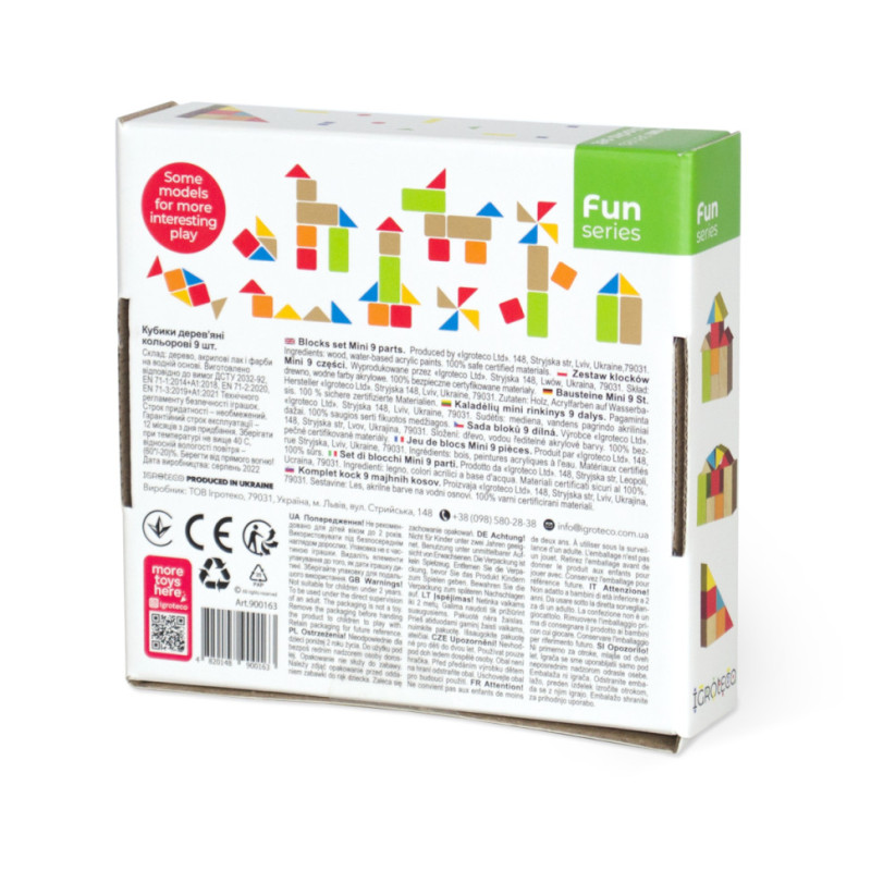 Склад: натуральне дерево, сертифіковані лакофарбові матеріали на водній основі, картонна упаковка.