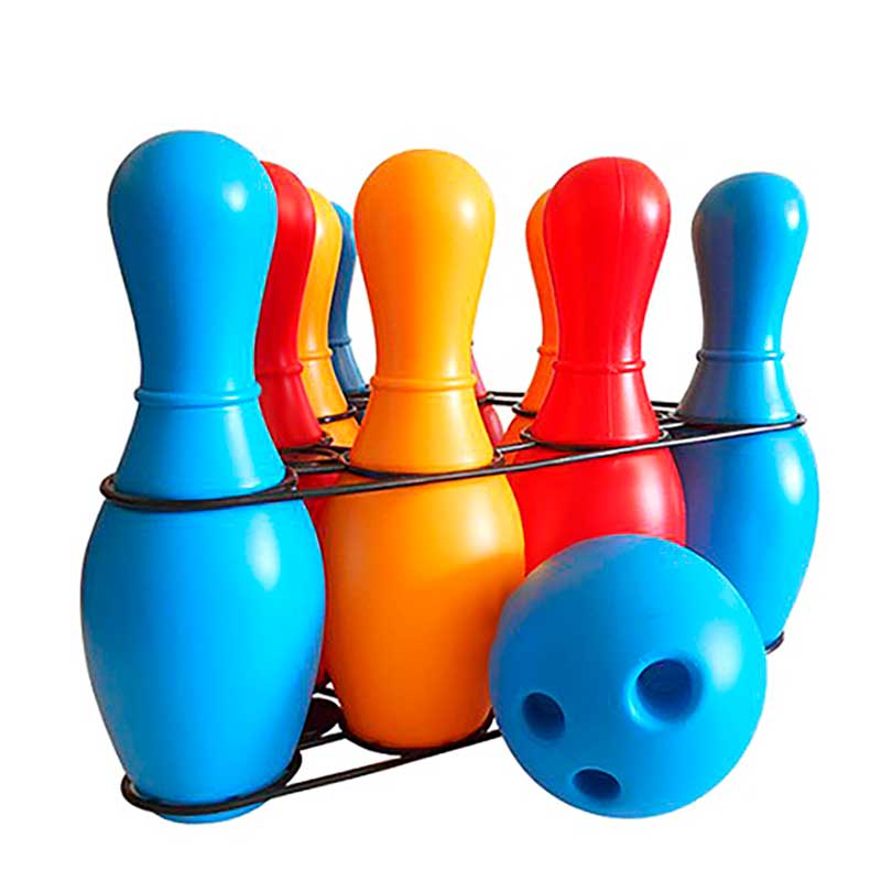 У набір входить: 9 кеглів і 1 куля для гри в боулінг.