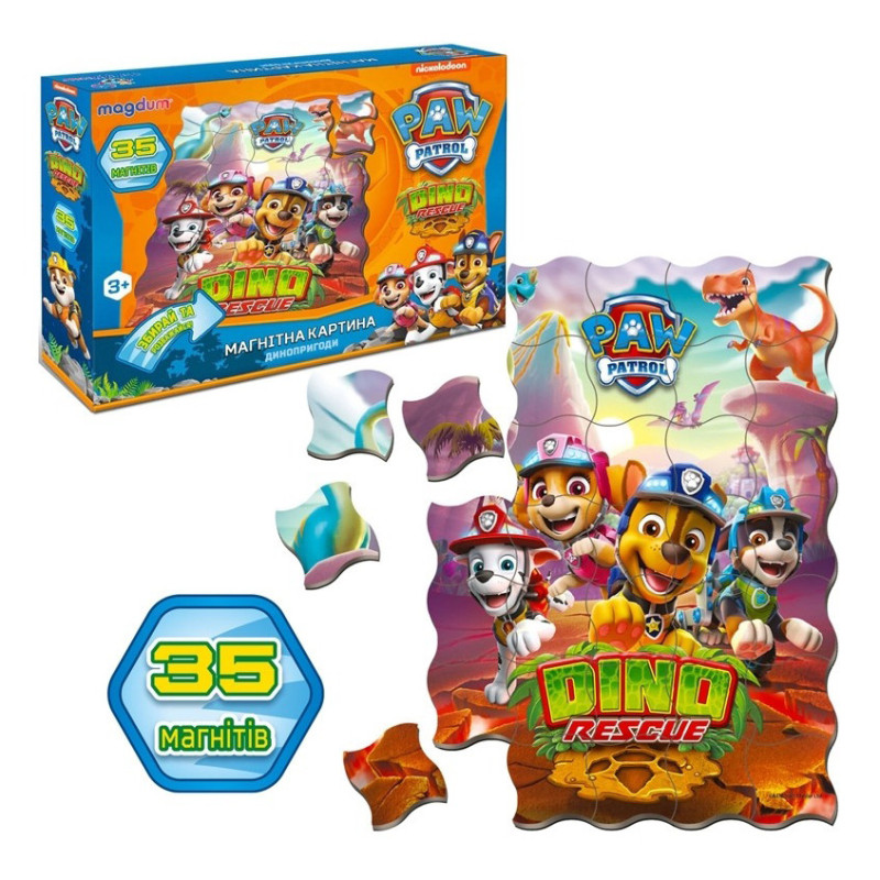 Дитячі магнітні пазли "Щенячий патруль Динопригода" ML4034-35 35 магнітних елементів