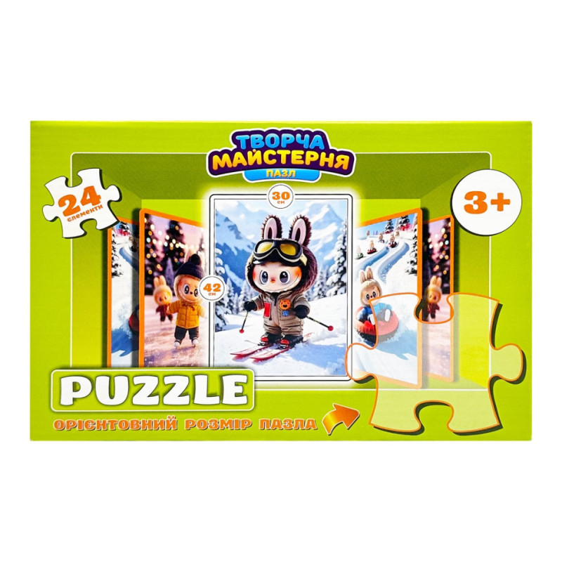 Дитячі пазли "Лабубу на лижах" Puz-M-10 24 елементи розмір 30х42 см