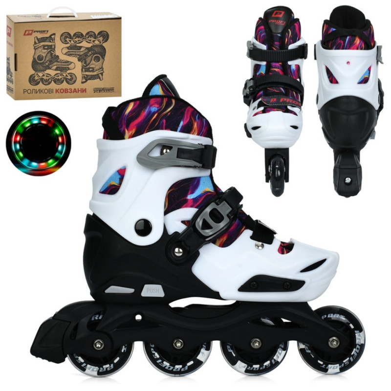 Сучасні ролики PROFI A4159 — це вдале поєднання стилю, безпеки та функціональності для активного катання. Модель з яскравим дизайном і підсвіткою коліс потішить дітей і підлітків, забезпечивши комфорт і впевнену фіксацію ноги.