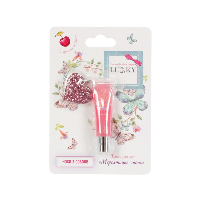Блиск для губ Lukky Мерехтливе сяйво з ароматом вишні.