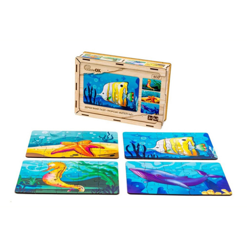 Дитячий деревяний пазл Морські жителі 4 в 1 Puz-57896 80 елементів