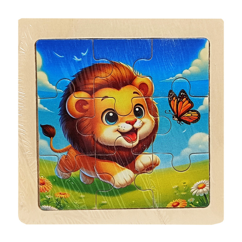 Дитячий дерев'яний пазл-вкладиш "Левеня та метелик" MD 1506-23 9 елементів