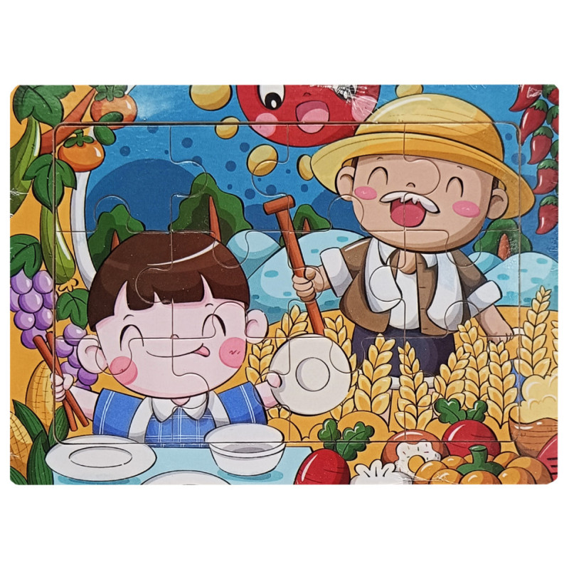 Дитячий деревяний пазл-вкладиш "На дачі у діда" MD 1343-10 12 елементів 15 х 11 х 04 см