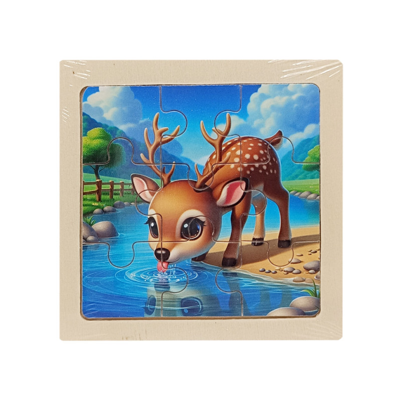 Дитячий дерев'яний пазл-вкладиш "Оленятко" MD 1506-27 9 елементів 98 х 98 х 04 см