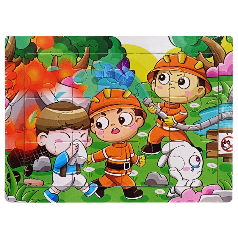 Дитячий дерев'яний пазл-вкладиш "Пожежники на роботі" MD 1343-16, 12 елементів 15 х 11 х 0,4 см
