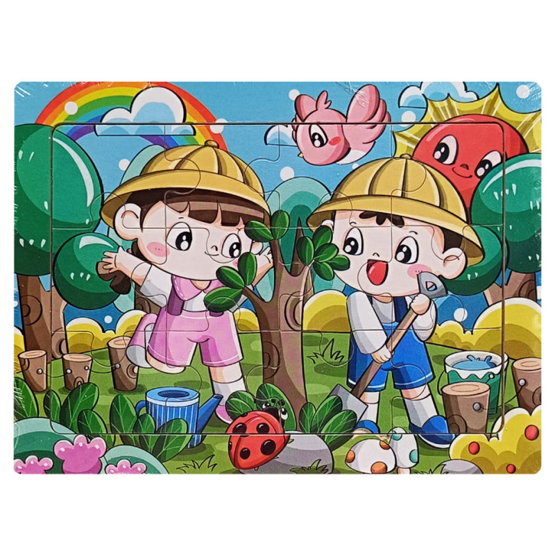 Дитячий дерев'яний пазл-вкладиш "Садіння дерев" MD 1343-15, 12 елементів 15 х 11 х 0,4 см