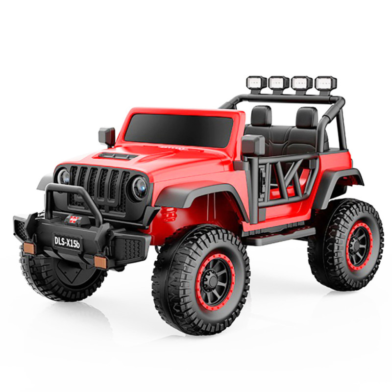 Дитячий електромобіль джип M 6065EBLR - виглядає стильно і реалістично, своїм дизайном він схожий на справжній позашляховик, дана модель має яскраві фари, а також музику, що забезпечує веселу та цікаву поїздку.