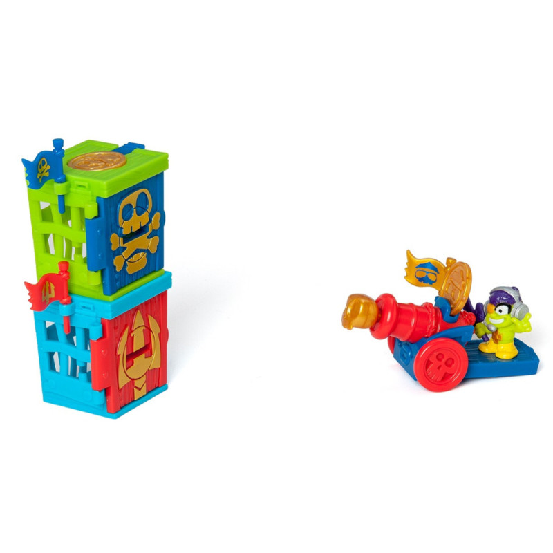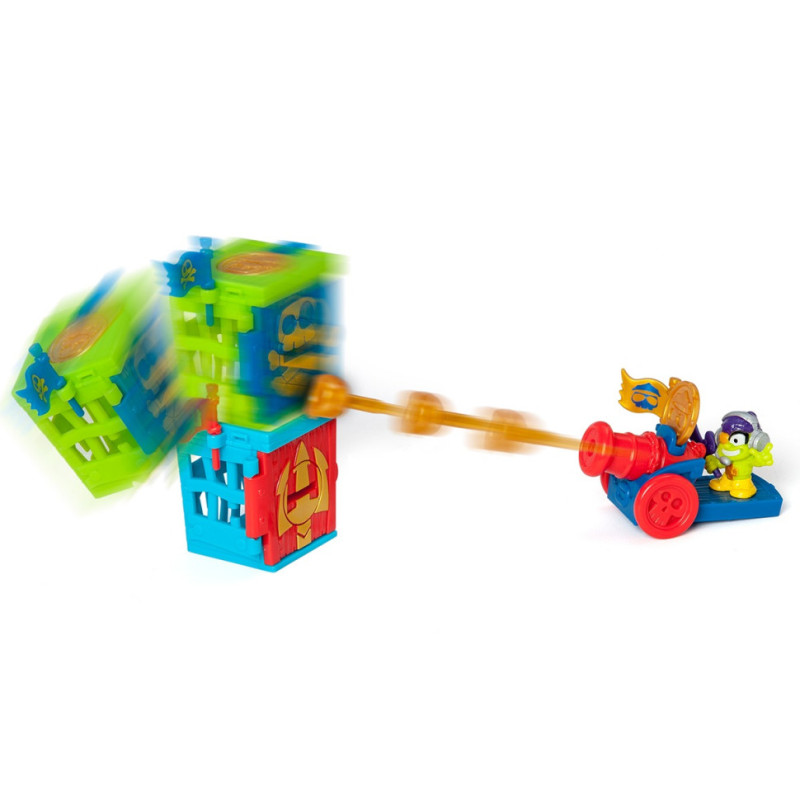 На платформі за гарматою закріпіть вашого пірата за виступ. Завдяки рухомим колесам покотіть гармату у необхідне місце, вставте іграшковий снаряд у гармату до звуку «клік», вставте і натисніть монетою у виступ на гарматі. Спостерігайте за епічним пуском!