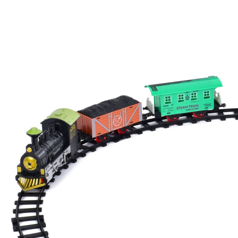 Який хлопчик не мріє про іграшкову залізницю? Деталізований потяг з 2 вагонами - найкраще втілення дитячої мрії! Локомотив у ретро стилі має додаткові звукові та світлові ефекти: натисніть на кнопку, і почнеться справжня магія - потяг починає стрімко рухатись по колії з яскравим підсвічуванням та гучними характерними звуками.