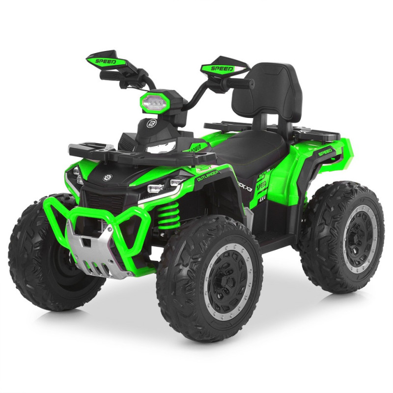 Дитячий електромобіль M 6275 EBLR оснащений двома потужними моторами і працює від надійного акумулятора, який забезпечує плавний рух і хороший час роботи без підзарядки. Батьки можуть керувати квадроциклом за допомогою ручки, якщо дитина ще не готова до самостійної їзди, або використовувати пульт дистанційного керування для повного контролю над безпекою. Це особливо зручно на прогулянках, коли потрібно тримати малюка під наглядом.