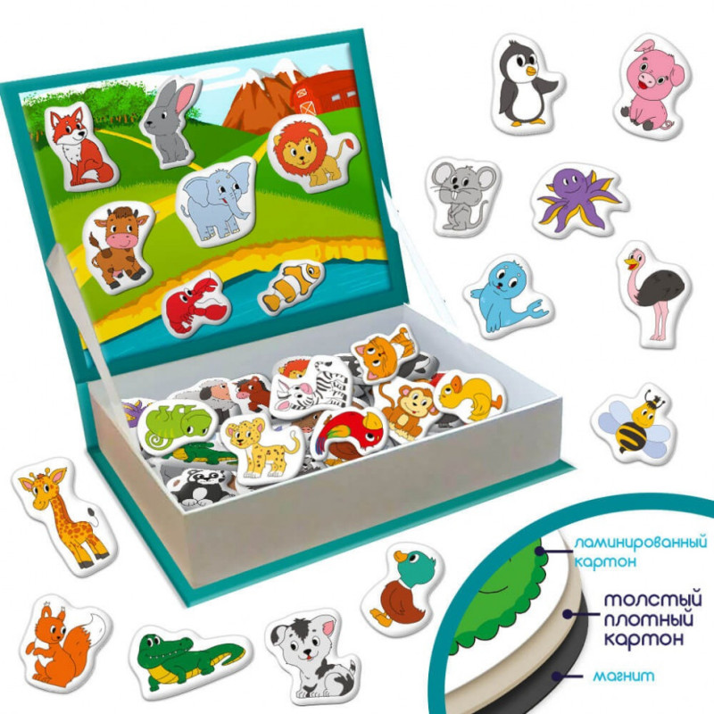 Діти обожнюють історії! А що, якщо запропонувати дитині не просту історію, а магнітну! У коробці-книжці маленький дослідник знайде 71 магнітну фігурку.