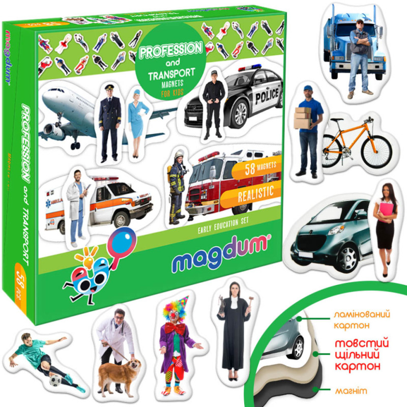Набір навчальних магнітів від українського бренду Magdum подарує безліч цікавих ідей для захоплюючого і корисного дозвілля дитини. Розглядаючи зображення і запам'ятовуючи назви, крихітка вже з 3-х років розширить кругозір, збагатить словниковий запас.