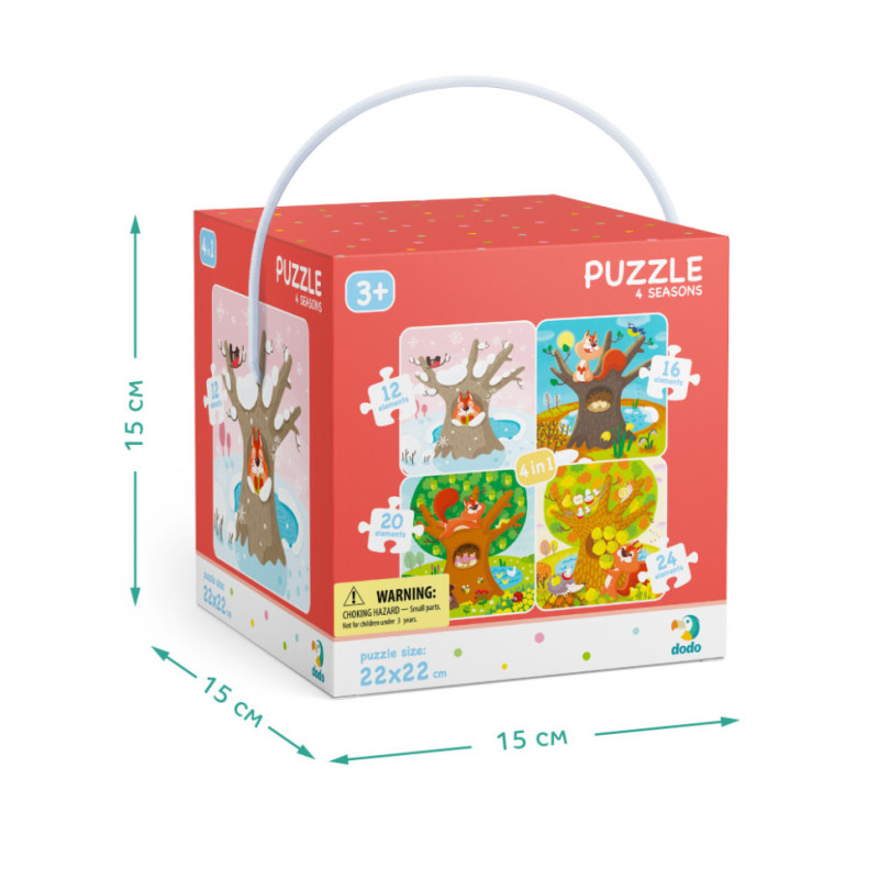 Пазл 4 в 1 "Пори року" української ТМ Додо в подарунковій об'ємній коробці-кубі з ручкою.